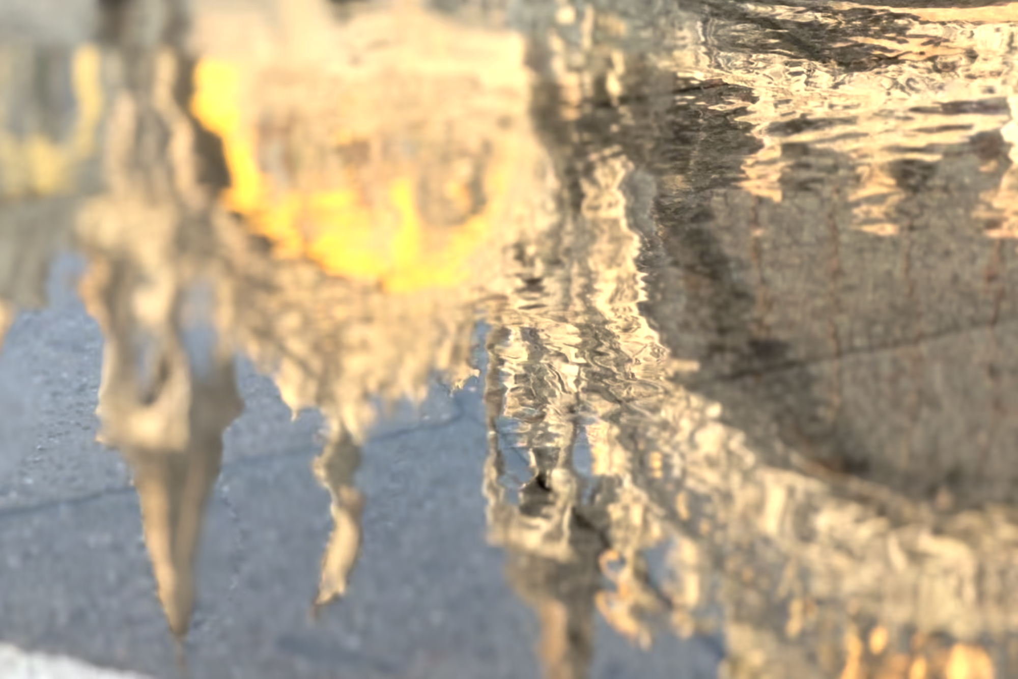 Schneekügelchen rollen talwärts und hinterlassen poetische Spurenmuster im Tiefschnee. Einige bleiben stecken, andere rollen weiter, verschwinden aus dem Blick. Die rollenden Schneekugeln entwickeln eine Sogwirkung, reissen uns mit auf eine Reise durch Zeit und Raum. Am Meer angekommen vergehen die letzten Schneekügelchen, während der Mensch sich im warmen Wasser vergnügt und nichts zu bemerken scheint.